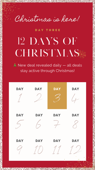 🎄 Each day during our 12 Days of Christmas, a new holiday deal is revealed right here on the website.