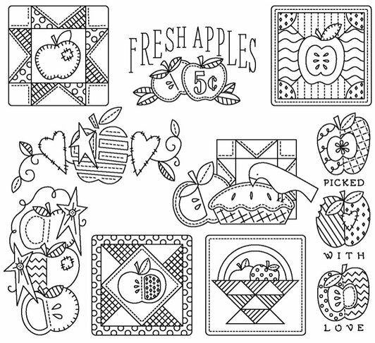 Patchwork Apples Embroidery Iron-On Transfer Pattern #4030 by Aunt Martha's®
