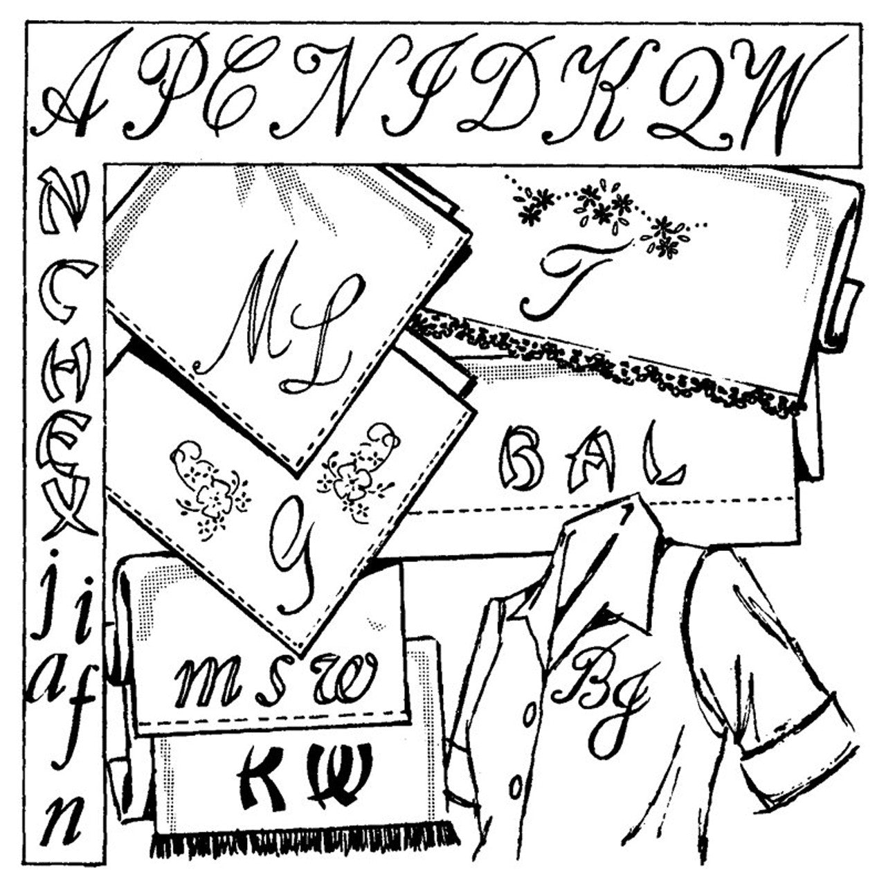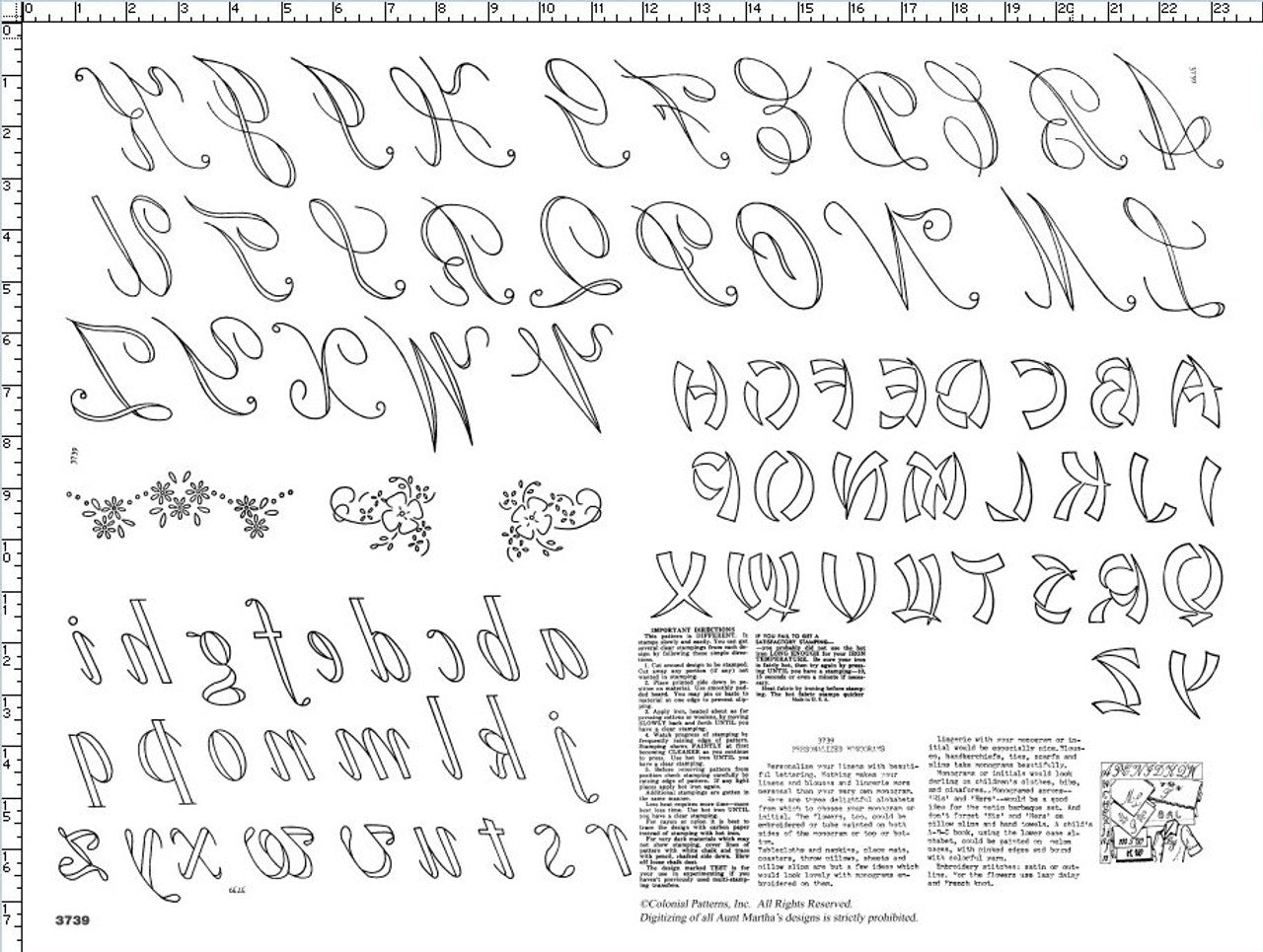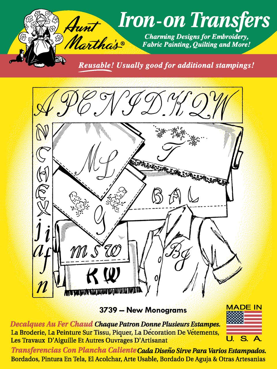 New Monograms Vintage Iron-On Embroidery Transfer Pattern #3739 by Aunt Martha's®.