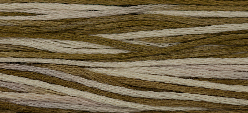This hand-over-dyed,  Six-Strand Embroidery Floss by Weeks Dye Works™ made from Egyptian cotton fiber is variegated enough to be noticeable yet subtle enough to blend naturally.  Because it is pliable, this fiber is perfect for surface embroidery, cross stitch, and needlepoint on many different counts of fabric and canvas. It also works great for punch needle (1, 3, and 6 strand) and stitching on wool applique and penny rugs.  It gives a more subtle appearance to the fine stitching on applique than some of the other heavier fibers like pearl cotton.