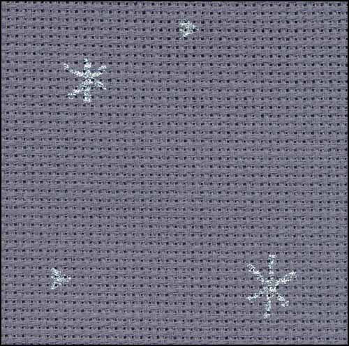 20 Count Sparkle Grey with Metallic Silver Print Aida by Zweigart is 100% cotton. Similar in color to DMC® 317 with silver metallic print patterns. The little triangles in print pattern measure only 1/8".