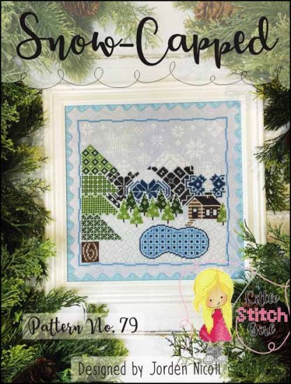 Snow-Capped Cross Stitch Pattern by Little Stitch Girl, Design by Jorden Nicoll for Nashville Needlework Market 2025.