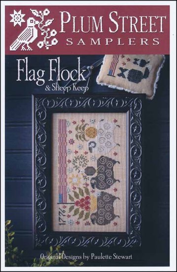 Flag Flock & Sheep Keep Cross Stitch Pattern by Plum Street Samplers.