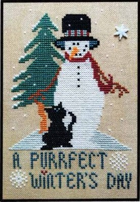 This charming cross-stitch design features a dapper snowman in a top hat, a festive Christmas tree, and a playful black cat enjoying a snowy day. With rich evergreen hues, a pop of plaid, and delicate snowflakes stitched throughout, this pattern captures the magic of a crisp winter afternoon.