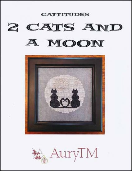 Cattitudes: 2 Cats and a Moon Cross Stitch Pattern by AuryTM.