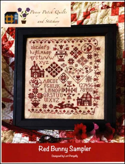 Red Bunny Sampler Cross Stitch Pattern by Pansy Patch Quilts and Stitchery.