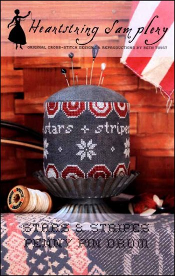 Stars & Stripes Penny Pin Drum Cross Stitch Pattern by Heartstring Samplery