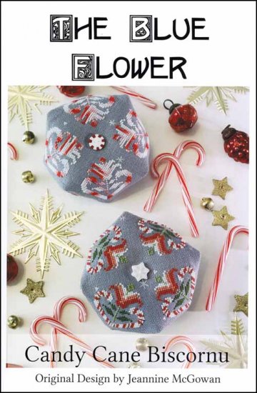 Candy Cane Biscornu Cross Stitch Pattern by The Blue Flower Original Design by Jeannine McGowan.