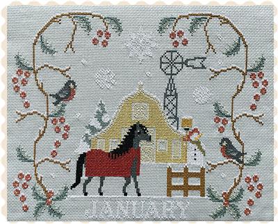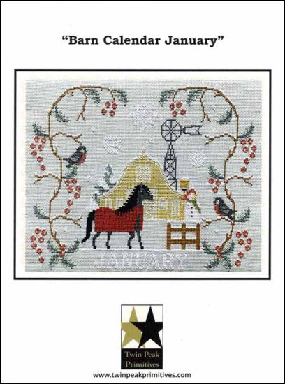 Barn Calendar January Cross Stitch Pattern by Twin Peak Primitives.