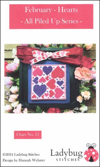 Get ready to fall head over heels for February - Hearts: All Piled Up Series Cross Stitch Pattern by Ladybug Stitches!