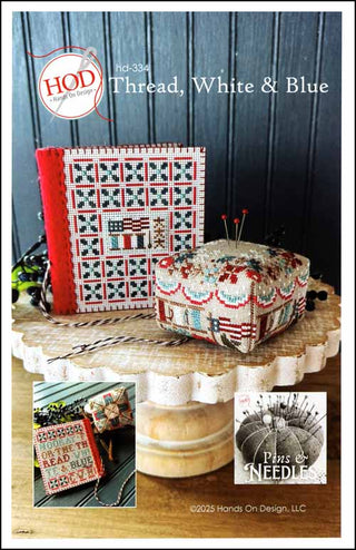 Thread, White & Blue Pincushion Cross Stitch Pattern by Hands On Design