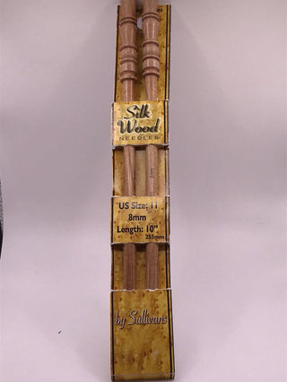 - 10" 11/8mm Silk Wood Single Point Knitting Needles by Sullivans