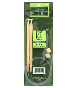 - 20" No. 11 / 8.0mm Takumi Bamboo Premium Flex Knitting Needles