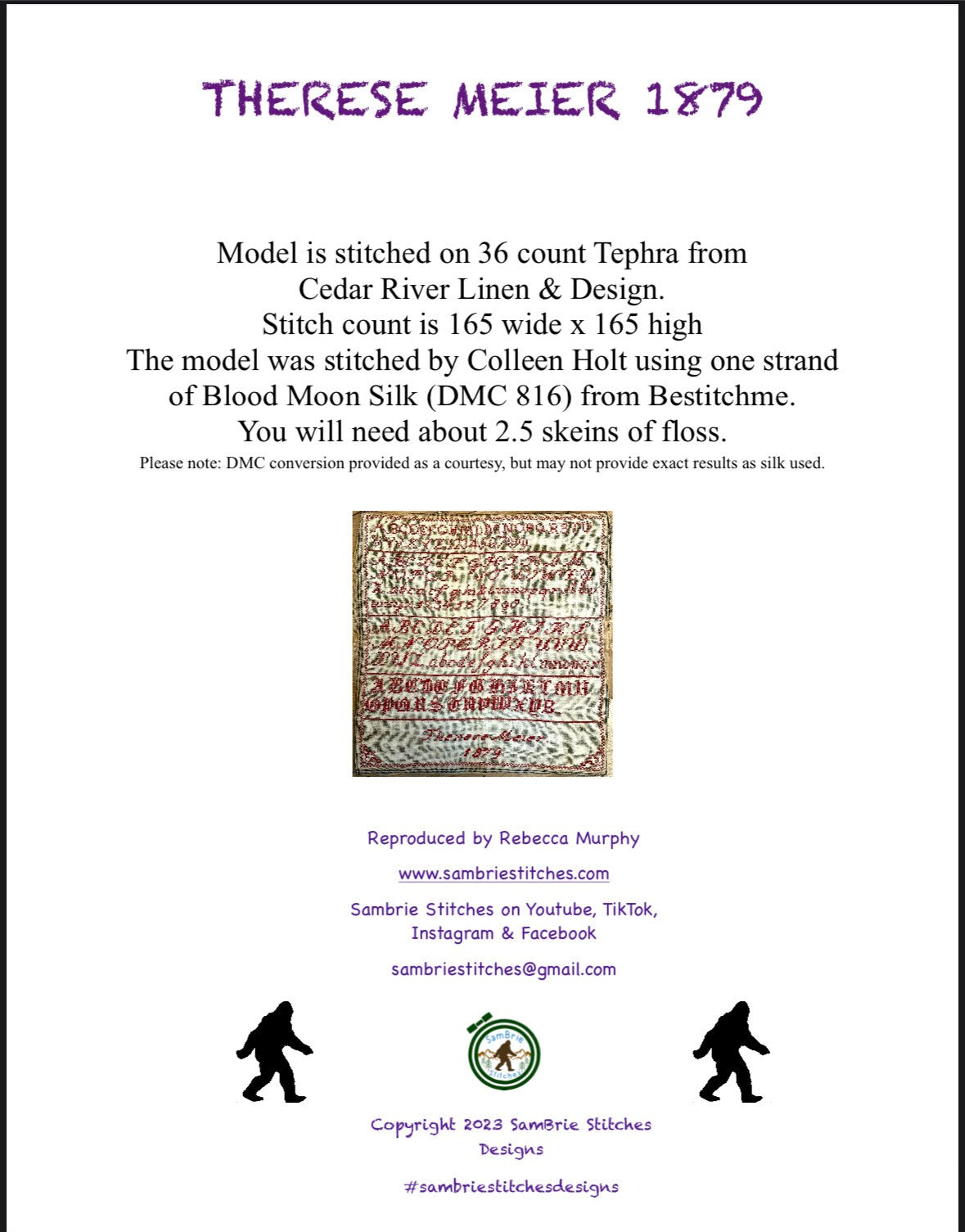 Therese Meier 1879 Cross Stitch Pattern by SamBrie Stitches Designs.