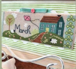 This delightful cross-stitch pattern by LuHu Stitches captures the essence of early spring with its pastel palette, rolling landscape, and a few fluffy sheep enjoying the fresh air. A whimsical pink kite dances in the sky, while the elegant script of "March" ties it all together.
