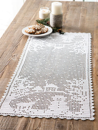- Welcome, white Christmases! This Winter Wonderland Table Runner captures the soft and serene snowfall over a quiet countryside. Worked in filet crochet, this pattern is easily customized to fit any table by adding rows to the center or repeating the design.