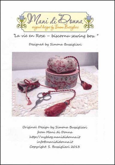 La Vie En Rose Biscornu Sewing Box Cross Stitch Pattern by Mani di Donna