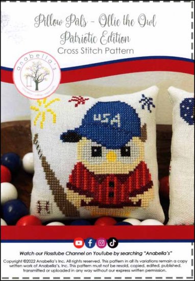 Ollie the Owl Pillow Pals Patriotic Edition Cross Stitch Pattern by Anabella's