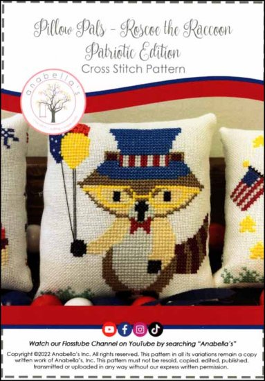 Roscoe the Raccoon Pillow Pals Patriotic Edition Cross Stitch Pattern by Anabella's
