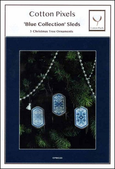 Blue Collection Sleds Cross Stitch Pattern by Cotton Pixels.