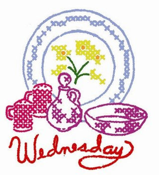 #3951 Snowmen Tea Towels – Aunt Martha’s® Days of the Week Embroidery Transfer