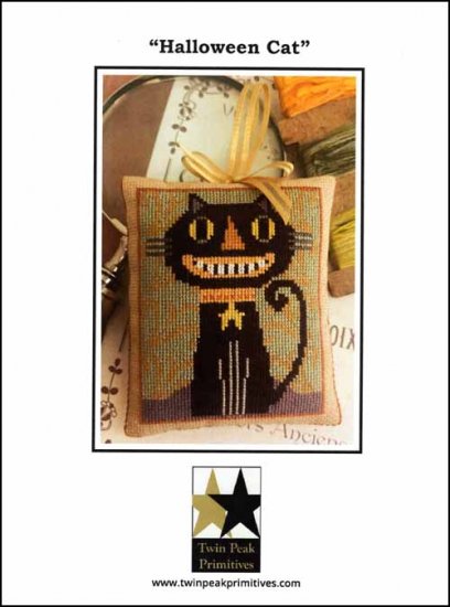 Halloween Cat Cross Stitch Pattern by Twin Peak Primitives.