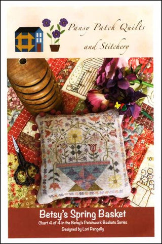 Betsy's Spring Basket Cross Stitch Pattern Pansy Patch Quilts and Stitchery