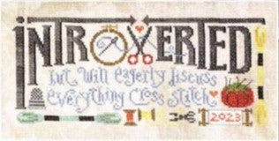 Calling all proud introverts with a passion for stitching! This playful design boldly proclaims "INTROVERTED" in a striking, modern font, with the perfect disclaimer underneath: "but will eagerly discuss everything cross stitch."