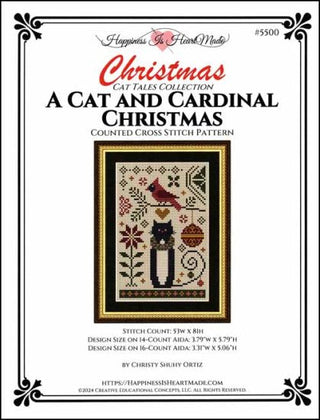 A Cat And Cardinal Christmas Cross Stitch Pattern by Happiness Is HeartMade