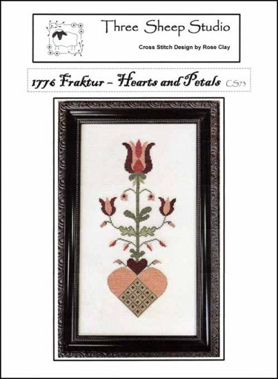 1776 Fraktur - Hearts and Petals Cross Stitch Pattern by Three Sheep Studio, designed by Rose Clay.