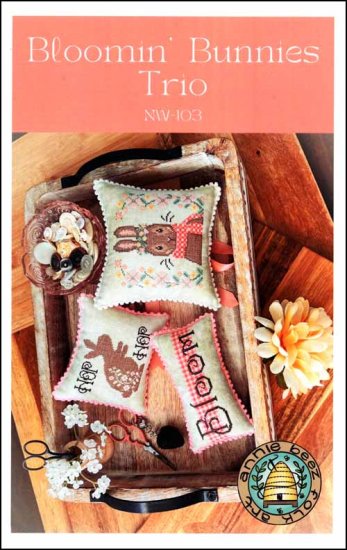 Bloomin' Bunnies Trio Cross Stitch Pattern by Annie Beez Folk Art.