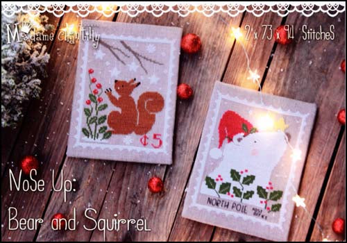 Nose Up: Bear and Squirrel Cross Stitch Pattern by Madame Chantilly.