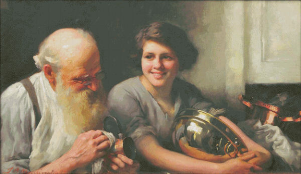 A Merry Heart Goes A Long Way FULL COVERAGE Cross Stitch Pattern by Heaven and Earth Design, Artwork by Thomas Benjamin Kennington.