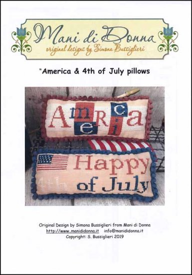 America & 4th of July Pillow Cross Stitch Pattern by Mani di Donna Original Designs by Simona Bussiglieri.
