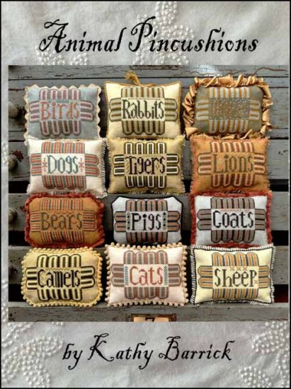 Animal Pincushions Cross Stitch Pattern by Kathy Barrick.