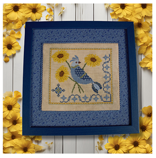 Bring the gentle beauty of nature to your needlework with this enchanting cross-stitch pattern. Blue Birds Sunflower Serenade showcases a vibrant bluebird perched gracefully among golden sunflowers, all set against a soft cream-colored background.