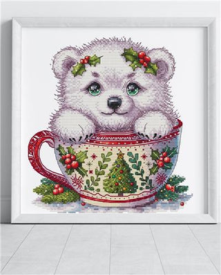 Christmas Animal Cup Bear Cross Stitch Pattern by Les Petites Croix de Lucie.