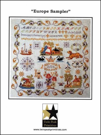Europe Sampler Cross Stitch Pattern by Twin Peak Primitives.