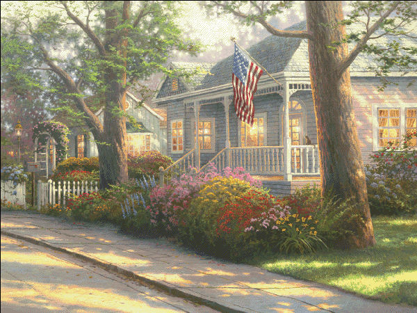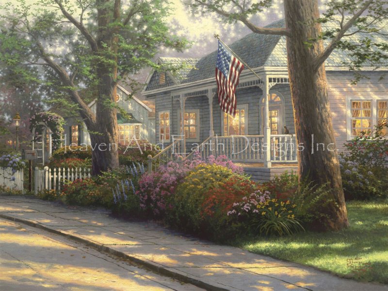 Hometown Pride FULL COVERAGE Cross Stitch Pattern by Heaven and Earth Designs, Artwork by Thomas Kincade Studios.