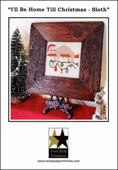 I'll Be Home Till Christmas - Sloth Cross Stitch Pattern by Twin Peak Primitives.