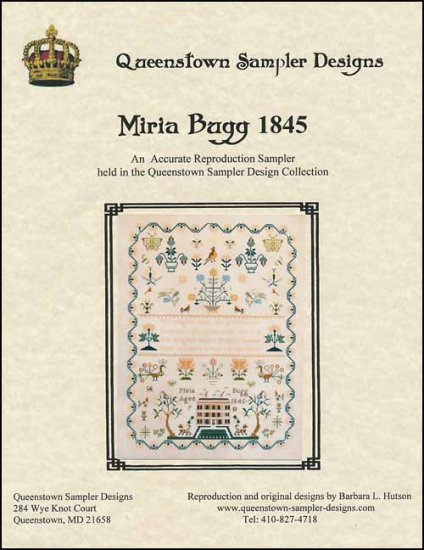 Miria Bugg 1845 Cross Stitch Pattern by Queenstown Sampler Designs.