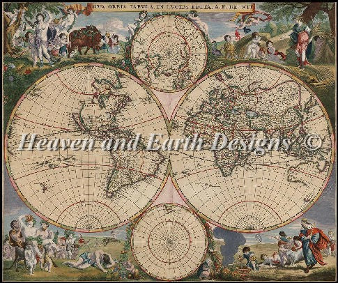 Old World Map FULL COVERAGE Cross Stitch Pattern by Heaven and Earth Designs