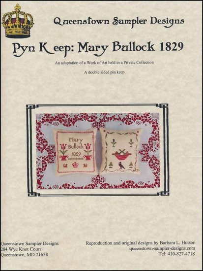 Pyn Keep: Mary Bullock 1829 Cross Stitch Pattern by Queenstown Sampler Designs.